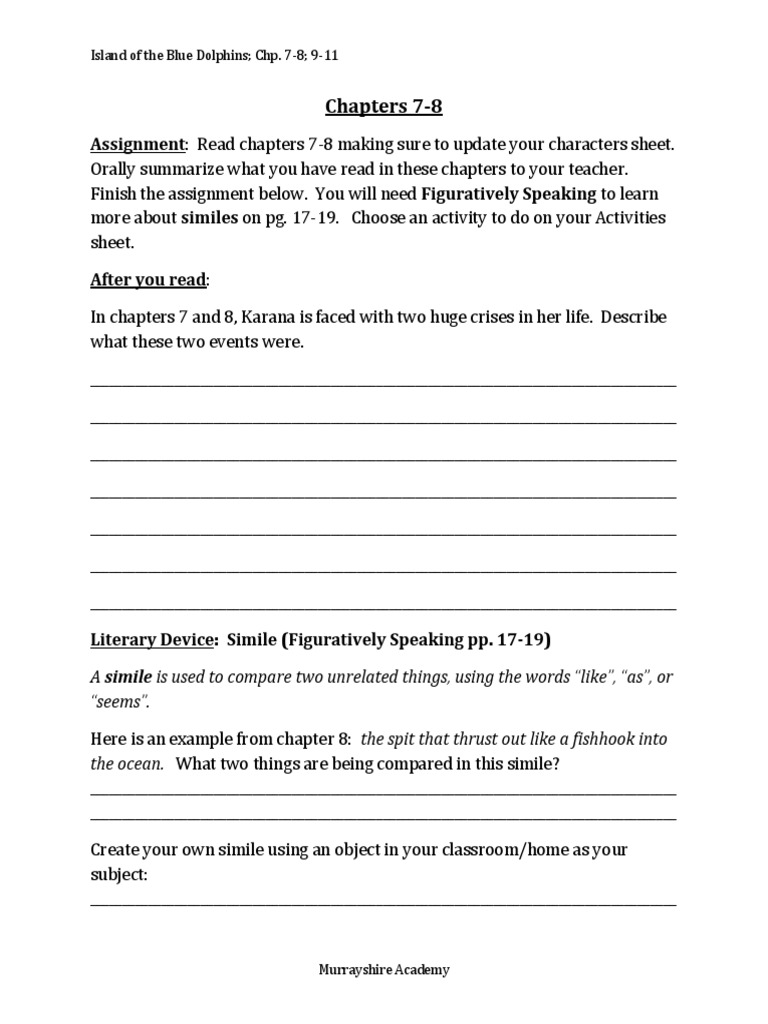 Island Of The Blue Dolphins Chps 7-8 9-11 Pdf