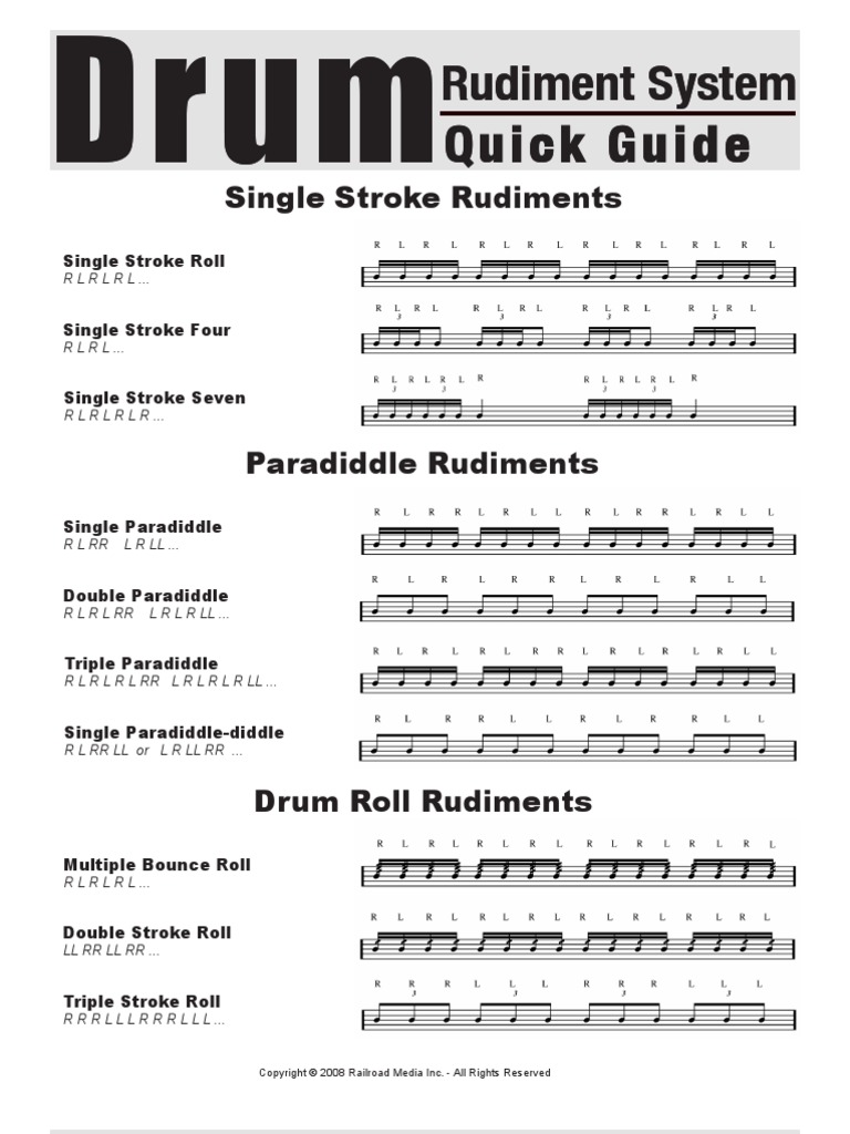 Posted on july 10, 2021. In order to help you in learning and perfecting these rudiments, i have included easy to read examples, performance tips, free pdf sheet music and video tutorials. I am gradually working through all the rudiments i know and hope this will eventually become a free online.