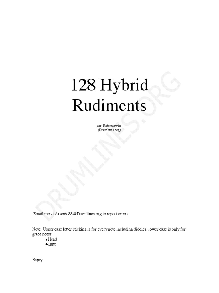 Upper case letter sticking is for every note including diddles, lower case is only for grace notes. 128 hybrid drum rudiments pdf. There is some crazy stuff in.